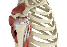The shoulder joint is a ball and socket joint formed by the union of the head of the upper arm bone (humerus) and the shoulder socket (glenoid). The rotator cuff is a group of four tendons that join the head of the humerus to the deeper shoulder muscles to provide stability and mobility to the shoulder joint.